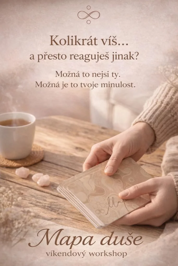 V sobotu půjdeme do hloubky. Seznámíš se se sadou 82 terapeutických kartiček Mapa duše, a knížkou, které dostaneš jako součást workshopu. Tvá pomůcka, učebnice, průvodce i rádce.